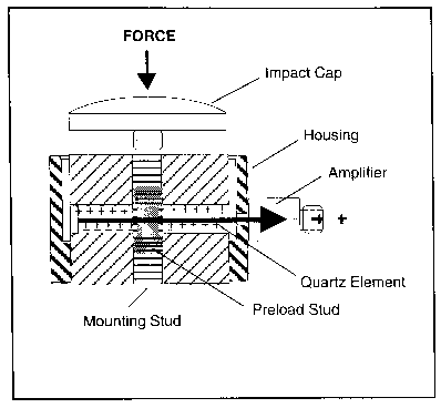 圖1顯示了典型石英力傳感器的橫截面。這種特殊的傳感器是通用208系列壓縮/張力模型,內(nèi)置電子元件。